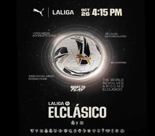 雷速体育10月9日宣 北京时间10月26日23:15,西甲第10轮,皇马在主场迎来与巴萨的本赛季首次西班牙国家德比。这场比赛的专属比赛用球已经揭晓。 彪马和西甲联赛联合发布了专为本赛季西班牙国家德比打造的官方比赛用球。 专属用球采用白色为底色,搭配醒目的黑色图案和金色标志。 这将是两队第262次在正式比赛中相遇,在此前261次西班牙国家德比中,皇马以105胜52平104负的战绩略微占优势。同时,这也将是两队第191次在联赛中相遇,在此前190次联赛对决中,皇马以79胜35平76负的战绩同样略微占优。 但在上赛季,皇马在各项赛事遭巴萨4连杀,其中2场联赛分别在主场0-4惨败、客场3-4告负。 |