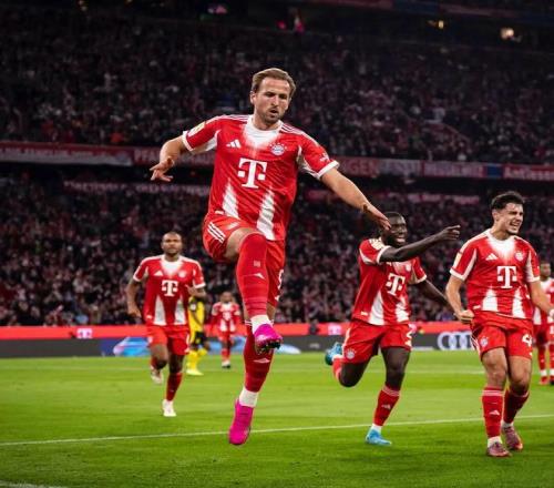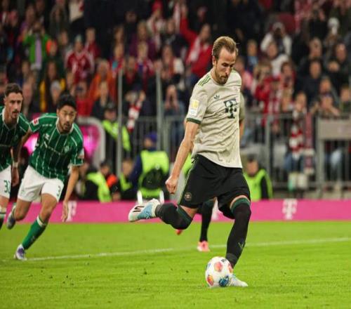 令人遗憾的是,凯恩在加盟拜仁首季并未结束“冠军荒”,直到上赛季他才随队捧起德甲冠军沙拉盘,收获职业生涯第一个团队冠军奖杯。2024-25赛季凯恩的联赛进球数虽然较此前一季有所下降——26球,但依然不妨碍他蝉联德甲金靴,同时成为德甲最快打进50球球员、前50场德甲进球最多球员,值得一提的是这两项跟“50”有关的德甲纪录前任保持者正是如今在英超大杀四方的哈兰德。 本赛季的凯恩又一次火力全开,前8轮德甲狂轰12球,再算上欧冠、德国杯和弗朗茨·贝肯鲍尔超级杯,开季14场各项赛事打进22球,效率惊人!其中联赛第5轮拜仁主场4比0大胜不来梅,凯恩造点并亲自操刀命中,德甲生涯连续18次主罚点球弹无虚发,从未罚丢;下半场他又在门前右脚捅射完成梅开二度,打进拜仁生涯100球,超越C罗和哈兰德,成为本世纪欧洲五大联赛为单一俱乐部最快打进百球的球员,只用了104场比赛。