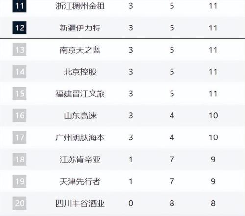 11-17全部都是3胜。现在浙江换帅之后两连胜,他们已经开始崛起了。新疆这轮艰难拿下广州,但后续还是客场之旅,不知道能不能顶住。同曦阵容配置畸形,北控在张庆鹏的执教下攻守拉胯,而且沈梓捷还受伤了。福建这轮则击败了吉林,止住颓势。山东则是战胜山西,末节弃用高诗岩之后,球队攻守都被盘活了。广州溃败新疆,本土球员还是太铁了。 江苏、天津和四川排在倒数,他们本赛季基本上没什么好期待的了。 |